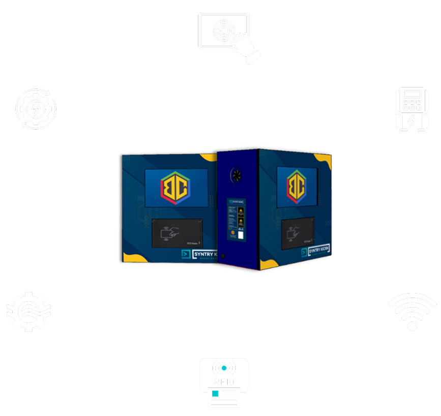 Vibrant 5-inch touch display, elegantly presenting the syntry kiosk.